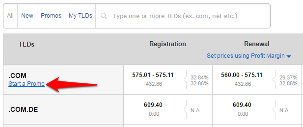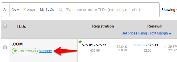 Click on the My TLDs link to list the TLDs for which you are a registrar. If you are a reseller for any TLD, click here learn how to manage an available Promo.