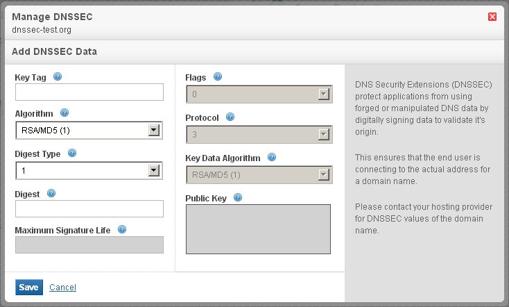 3. This will display the Manage DNSSEC view.