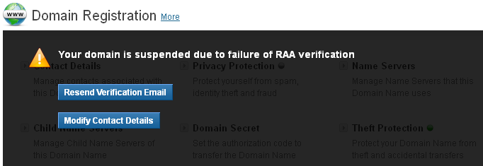 The above requirement is applicable for all gTLD domain names registered after 1 January, 2014. Domain names registered / transferred prior to this date are not subject to this verification process, unless the associated Registrant Contact email address is modified to an unverified email address.