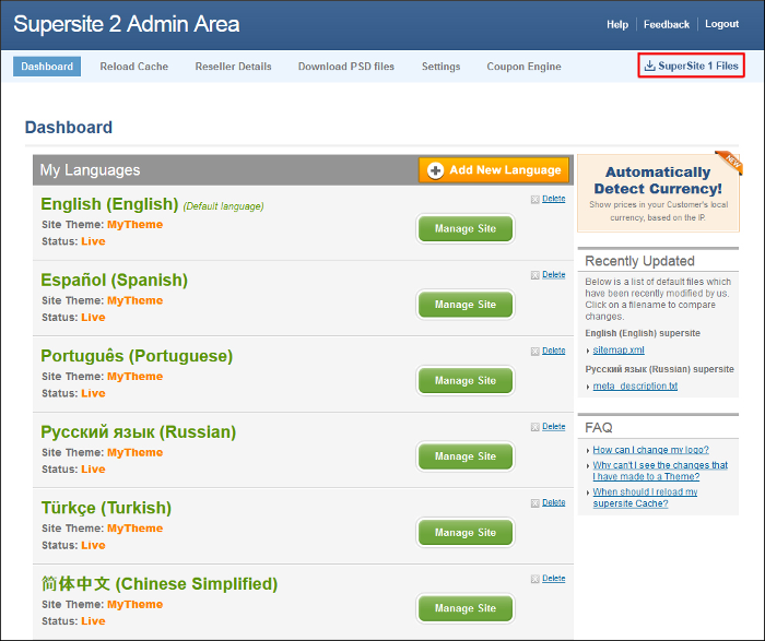• Any other customizations on your old SuperSite need to be replicated manually on your SuperSite 2 before the deprecation. Your old SuperSite files will be made available in the SuperSite 2 Admin Area for a short period of time, from where you can retrieve them, if required, after the deprecation.
