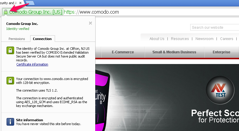 You can view a website's SSL Certificate by clicking on the lock icon in the address bar of a browser.