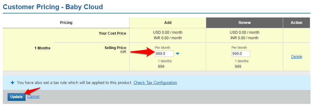 Add the per month Selling Price and click on the Update button to save your changes.