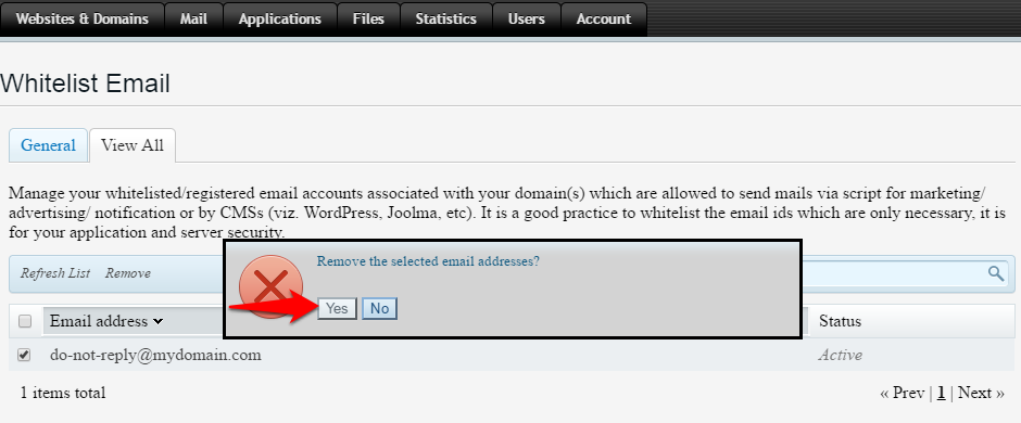 Enter the email ID you wish to register, select the reason from the drop down list and click on OK.