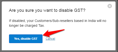 Click on the Yes, disable GST button to confirm.
