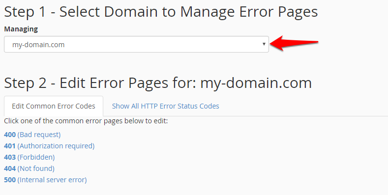 Step 1: Login to the cPanel of the domain name for which you wish to set custom error pages