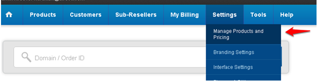 Click on Settings > Manage Products and Pricing.