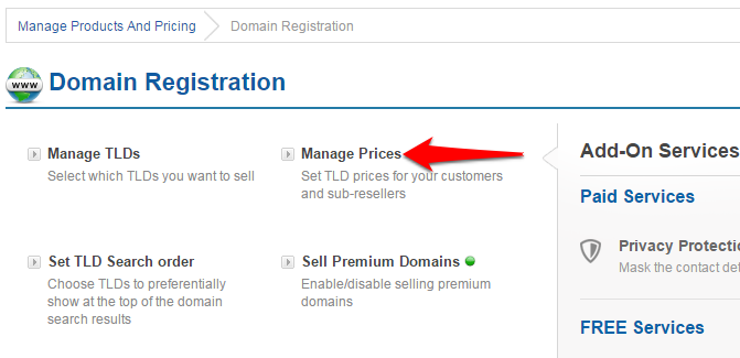 Click on the Manage Prices link.