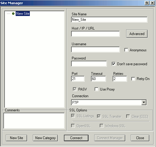 Click Close to save the changes. The change is saved and active for future FTP sessions of this site.
