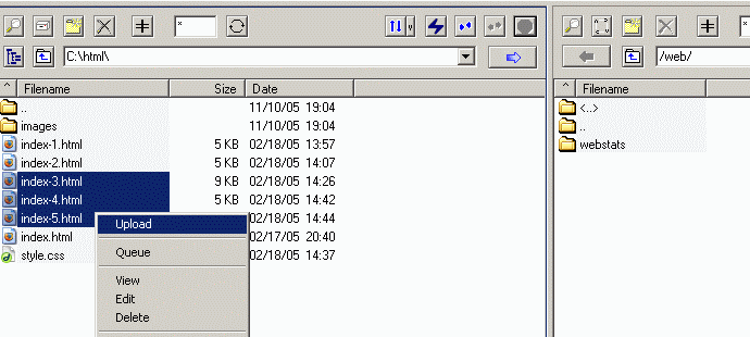 In the left pane, select a file to upload. Right-click on the file and choose Upload.